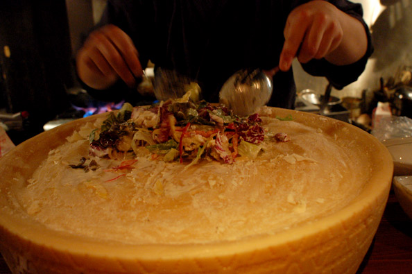 このチーズの上で、シーザーサラダを作ってくれるのです。たっぷり混ぜて贅沢すぎ!