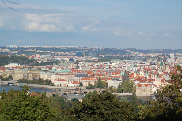 眺めのよい場所に立つとプラハ城もカレル橋もPraha3地区にあるテレビ塔も見渡せる。
