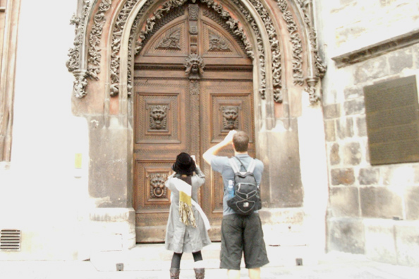 天文時計の前で知らぬ間にママが激写してくれてたお気に入り写真。※もちろん隣の男性は全く関係ない人。