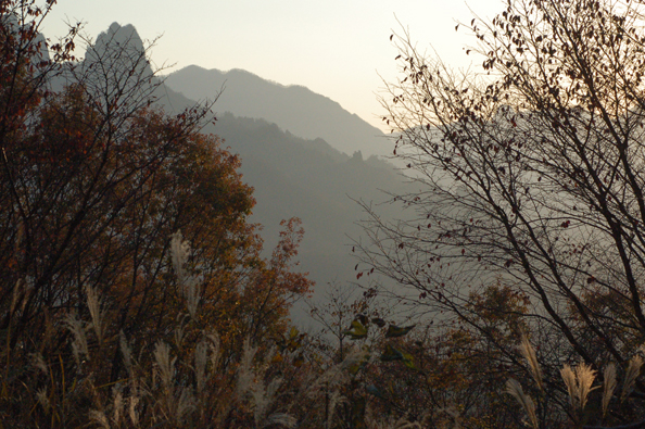 夕暮れには透明がかった妙義山がとても綺麗だった。見晴し台からは上信越道も見える。