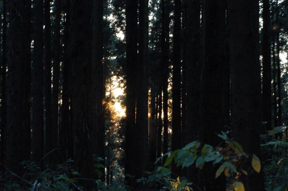 沈みゆく太陽の光が森の隙間から漏れて素敵でした。
