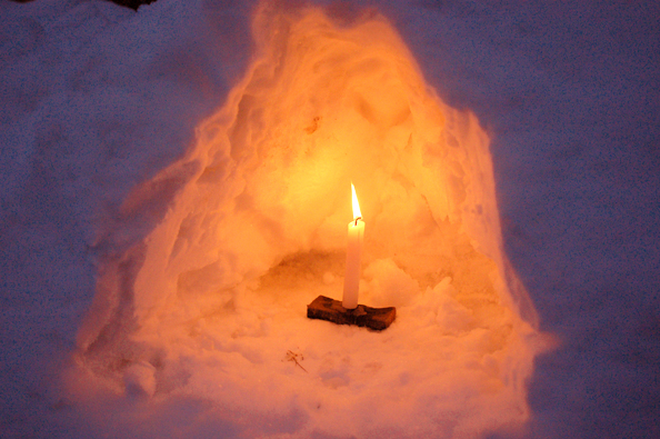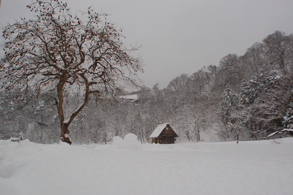 雪が、村と私たちにずっと降り注いでました。