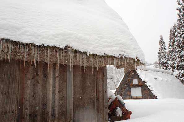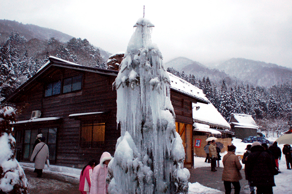 丘に登るとき、牙のようなつららが沢山いて、頂上からは世界遺産の村が見渡せる。
