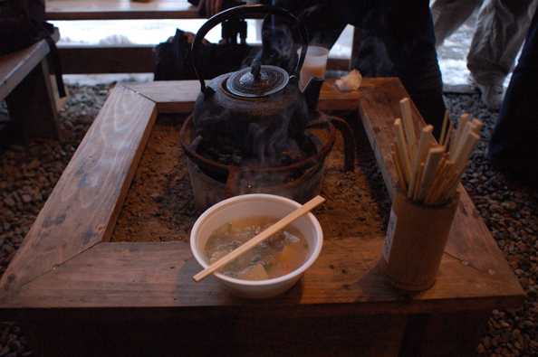 丘にあるお店で休憩。小さい方のがおすすめ!鴨汁がまじでうまい。体が暖まる。