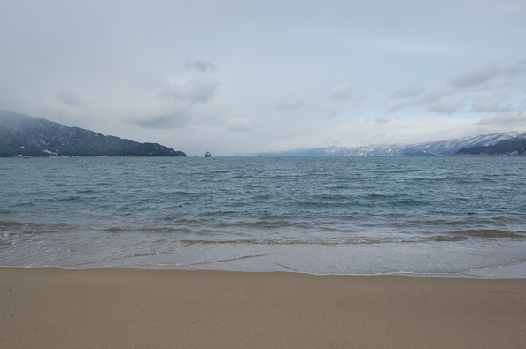 松原に出て、雪に覆われた日本海を見る。独特の匂いがした。