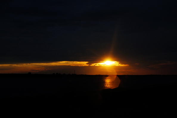 鶴岡市から日本海沿いの下道でいっきに秋田まで。酒田港で日本海に沈む夕陽を見た。
