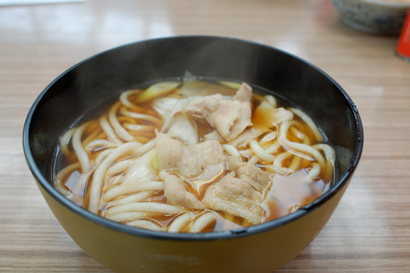 朝飯の肉うどん、んまかったー。もうそう=おばちゃんの妄想?と気になって頼んでみた煮物は、たけのこの種類だった。