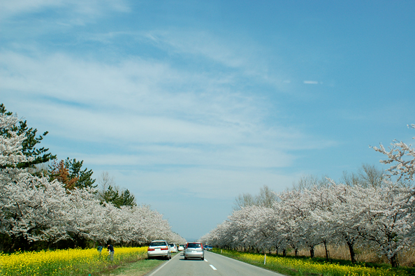 あまりに奇麗だったので、川を挟んで見ているだけでは物足りなく、近くまで行ってみる。