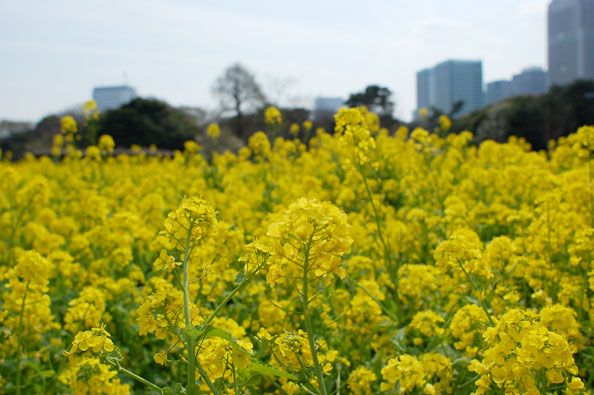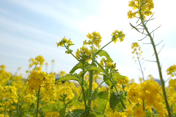 昨年は桜と戯れたので、今回は菜の花畑を横切ってみた。