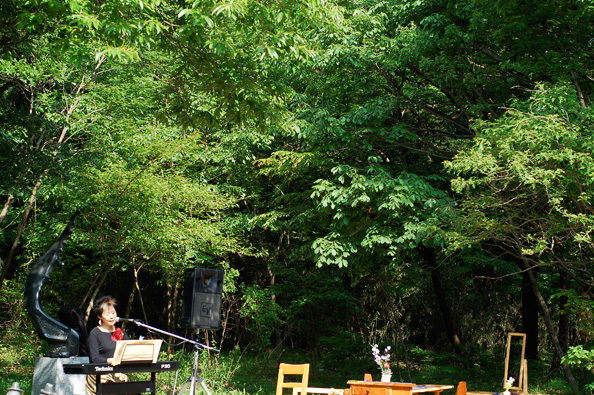カメオに群がる人々を背に、相変わらず書物の虜。