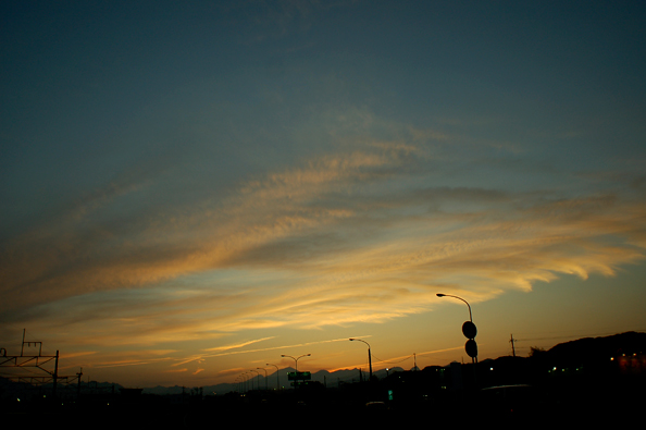 帰り道では、大きく羽を伸ばした夕暮れを見ました。ビルがないと空が広くていいなぁ。