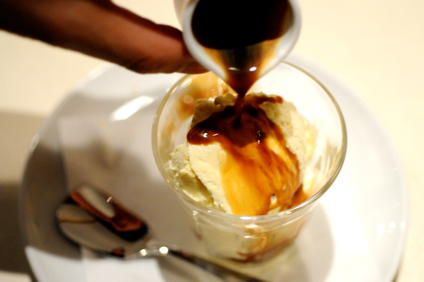 閉めのデザートはほろにがのエスプレッソをアイスにかけていただく。んまーい。