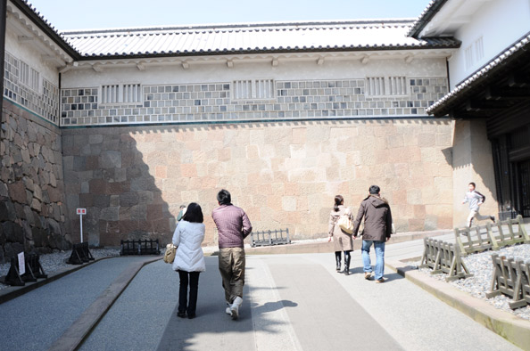 隣の金沢城をひと回り。屋根が白くて薄く雪が被っているような外観でした。