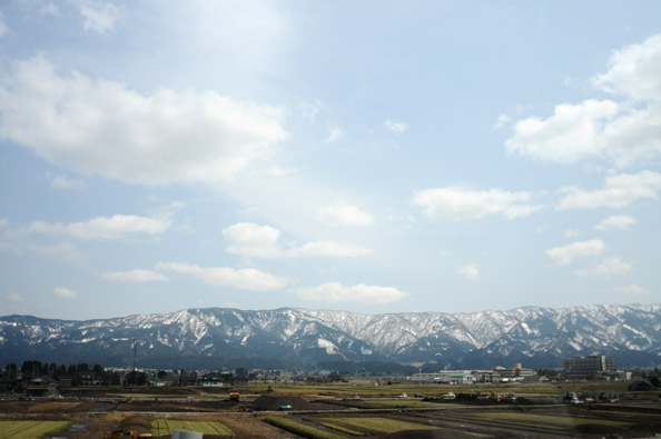 田園風景の向こうには雪をのせたアルプスが連なって、素晴らしい景色です。