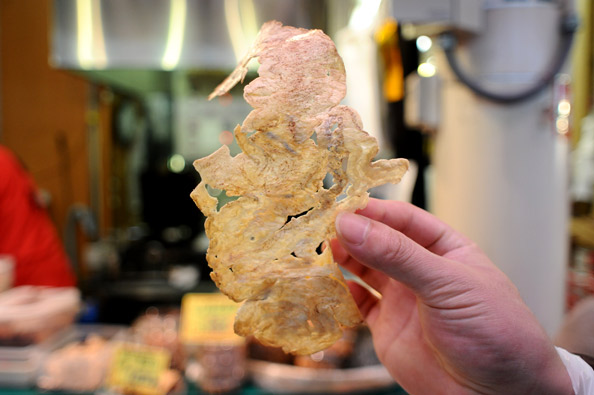写真はほたるいかの乾きものをプレスでぺたんこにしたやつ。ヘルシーだしお酒のおつまみにもいいよ(全国的に売ったらよいと思う)