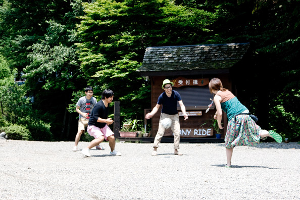 嵐も無事過ぎ去り、天気は良好。待ち時間に念願?のドッチボールをしました。(↓撮影:morldさん)