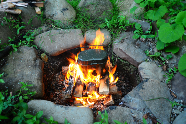 いちおう、飯ごう炊飯。(※直火過ぎです)