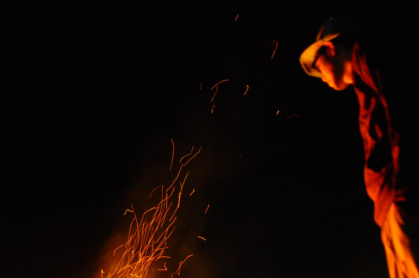 夜はお決まりの花火。別の組のキャンプファイヤーにあやかっていたら、突然カップルのプロポーズが始まりコーフン。昔のねるとんみたいでした。