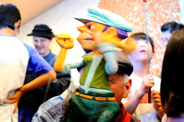 終わったあとは、劇団員がロビーに人形とともにご挨拶。実際に動かしてくれたりして、お子さんたちはもちろん大人も大喜び。