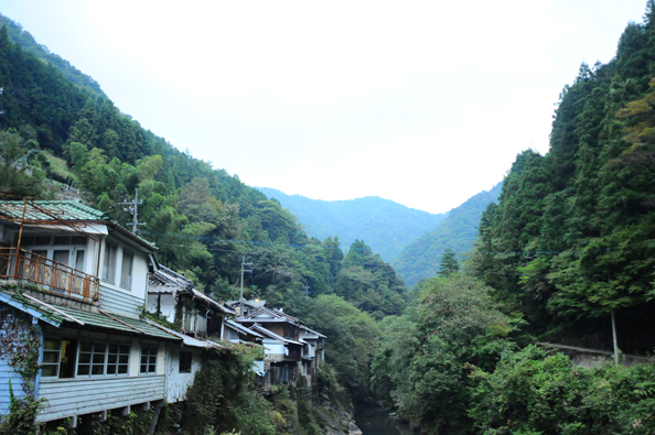 大豊ICを降りると、さっきまで上から見ていた景色まで下り、さらに進むと民家すらない山道に突入。