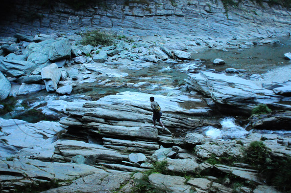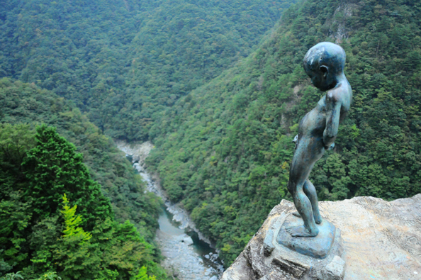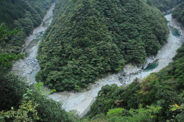 ザ・四国道(一車線しかない山道)をくねくねいくと、目的地の粗谷渓に。ガイドブックに必ず載っているベタな構図。
