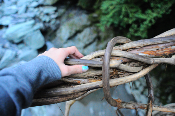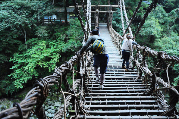 その昔、平家が逃れてここで繁栄を試みたんだって。橋の材料はシラクチカズラという蔦。