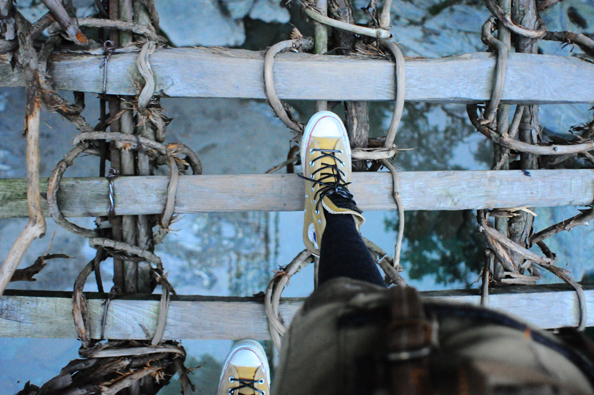 太ももくらいは余裕ではまる網目の足下に加え、たわみがあってぐらぐらします。にしても、びびりすぎ!