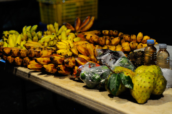 お目当ての火曜しかやっていないという地元の屋台をひと回り。バナナとかパパイヤの漬け物とか串焼きとか。もぐもぐ