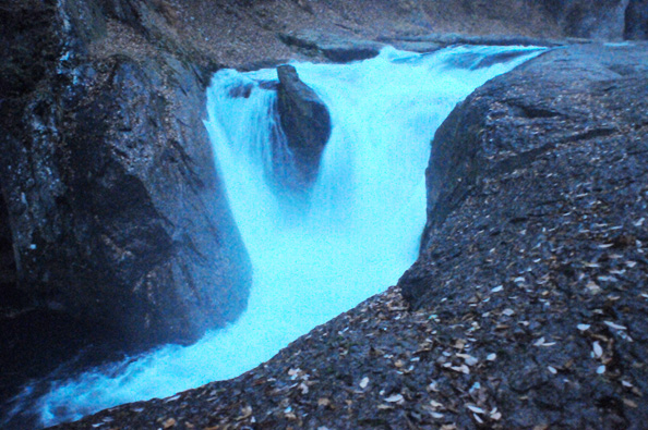 冬も目前ということで、早い夕暮れ。ある作家さんが描くような滝の絵が撮れました。