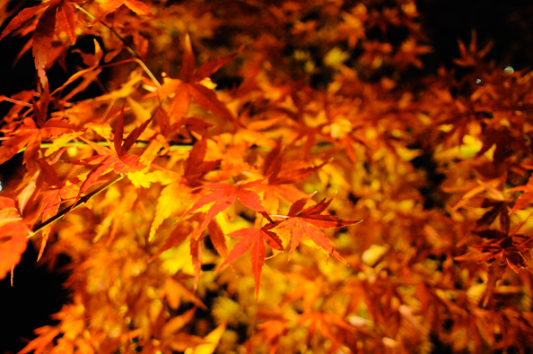 12月初旬のころ。残念ながら河鹿橋のライトアップの時間は過ぎてたけど、もみじが真っ赤でした。