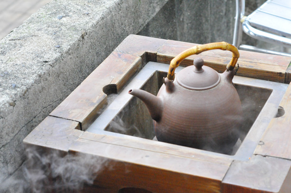 炭を足したり、茶釜を変えにきてくれるおかげで、常に湯気のあるお茶が飲めます。