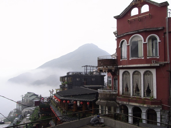 だいぶ奥まで歩いてくると、緑いっぱいのお店が目の前に。行きたかった九份茶坊です。