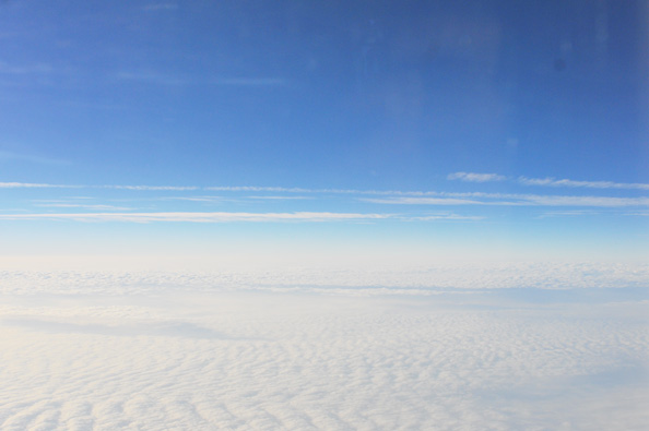 何も変わらない雲の上。だけど今までとは違うフィルタ越しで見る雲の上。3時間半ほどで日本に到着。
