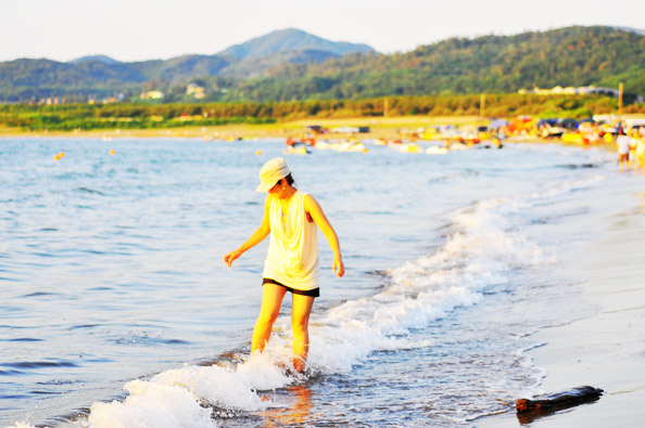 これまた貴重な”昼間の海にいるyumiko”と、波に戯れながら