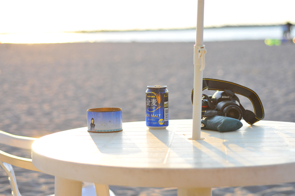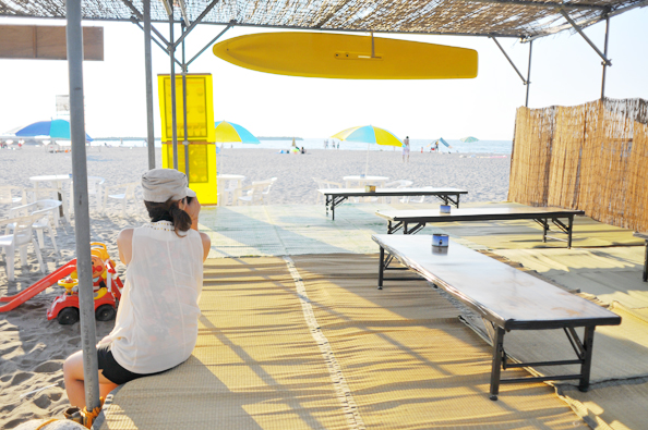 海の家で、ビールやアイスコーヒーを飲んでまったり。