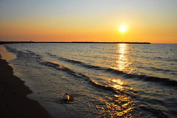 夕陽を見送る。